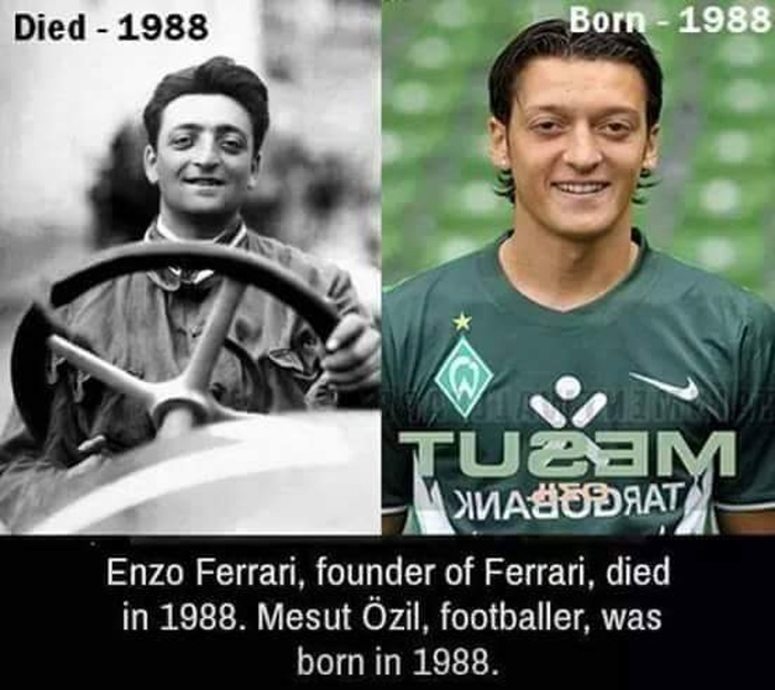 Ferrari died on the 14th of August 1988 & Mesut was born on the 15th of October 1988.