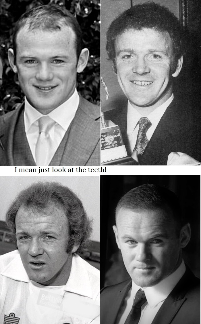 So, I will start with sport (giving mind to the above Ferrari & Ozil) and my lifelong support of Leeds United. For example below is a comparison of Leeds legend, Billy Bremner and top footballer, Wayne Rooney who to my mind must be clones, perhaps done so in order to artificially create the perfect footballer… If not, they can only be coincidental lookalikes.