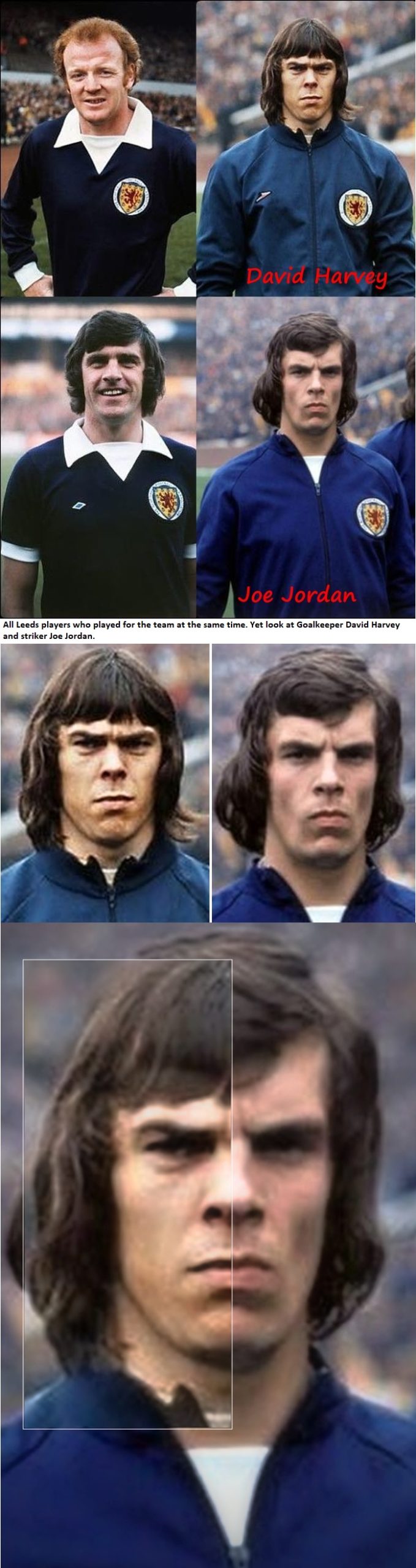 Quite why David Harvey & Joe Jordan are pictured looking identical I haven’t a clue, since in most photos they are easily recognizable as different people. Therefore (the photos come from the early to mid 1970’s) I can only think it is to create joinder for some reason.