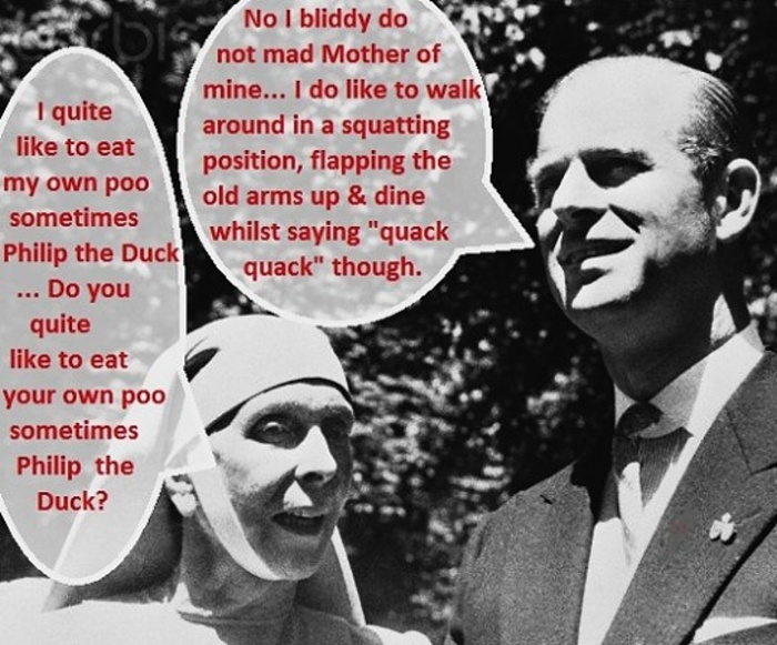 Course, anyone who knows Royal history will indeed be aware that Prick Philips Mum, Princess Alice spent many years in mental homes before eventually proclaiming herself a Nun.