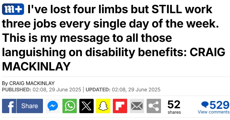 And I was right about Mackinley fading into obscurity whilst being called on every now and then to further help a government agenda… For instance pushing the severely disabled into employment: